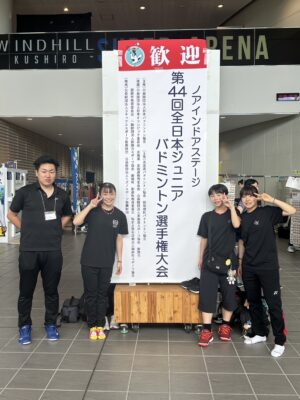 9月13日(土)~15日(月)に北海道釧路市で行われた、全日本ジュニアバドミントン選手権大会に、中学1年生篠原さん、高校1年生実原さん、前田さんが、長野県代表として出場しました。