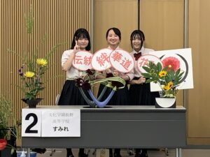 高3の部長として最後の大会となった井口さんは、「大会に向けた特別稽古で華道の技術が向上し、友情を育むことができました。