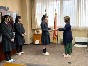 先月10月21日(火)、華道部の高校生3名に本校の華道池坊を指導していただいている田口先生から、校長室にてお免状が授与されました。