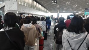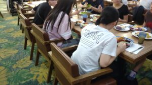 無事にグアムに到着しました。肌寒い長野とは正反対の蒸し暑い気候に驚かされつつ、明日に備えます。夕食はビュッフェ形式で様々な料理が並んでいます。