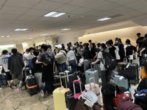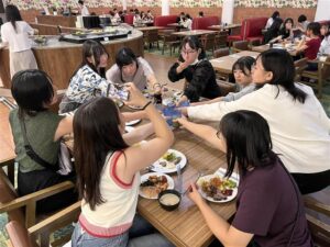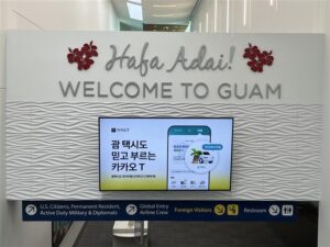 初めて飛行機に乗る人もいて、離陸時は大いに盛り上がりました。機内食を食べ、無事にグアムに到着することができました。
