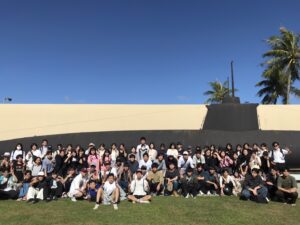 太平洋記念公園では日本軍が使っていた潜水艦の前で集合写真を撮りました。日本軍は2000隻の潜水艦でアメリカ軍の船を1隻しか落とせなかったという話を聞き、とても驚きました。館内では戦争の凄惨さを伝える資料を見ました。全て英語でしたが、生徒たちは真剣に読み込んでいるようでした。