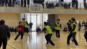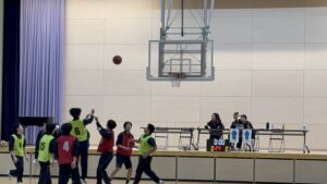 競技はバドミントン、バスケットボール(男子)、ドッジボール(女子)です。