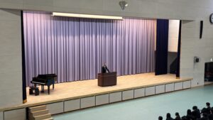 始業式では校長先生より、目の前のことだけでなくその奥を考えることの大切さについて、電気自動車を例にお話しがありました。