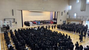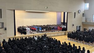 校長先生を団長として、全校生徒からエールを届けました。