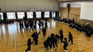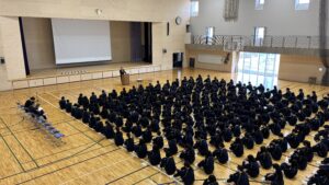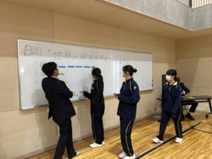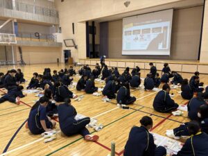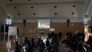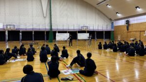 午前は校長先生、進路担当よりそれぞれお話をいただき、レクリエーションでした。