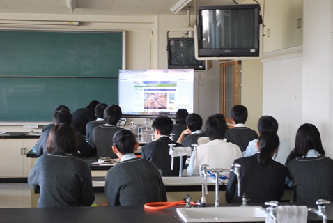 2学期の始めに理科室に新しく60インチの大画面テレビが設置されました。