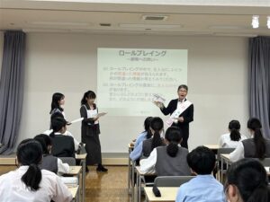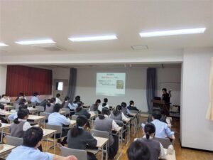 県庁より主査薬剤師 渡利幸治さんを講師にお呼びして「薬物乱用防止教育」行われました。身近な医薬品の使用法から違法薬物の危険性まで幅広い説明がされました。薬物乱用が人体や社会に及ぼす影響までわかりやすく説明していただきました。また生徒たちは、薬物使用を誘われた時の断り方を先生方のロールプレイから考えました。とても良い機会となりました。