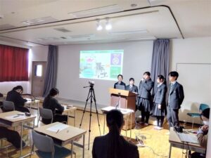 中学全校で信州ESD/SDGs成果発表&交流会に参加しました。他校の発表を聞き意見交流をしました。文化学園長野中学生徒会執行部は学園SDGs実践記録を、高校探究合同ゼミナールは廃油石鹸プロジェクトをそれぞれ発表しました。交流では他校からの質問にしっかり答えることができました。