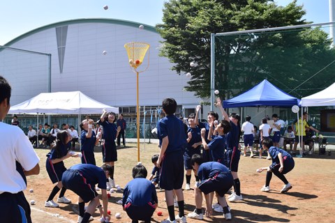 種目は、玉入れ、障害物競争、借り物競争、〇人〇脚リレー、綱引き、部活対抗リレー、